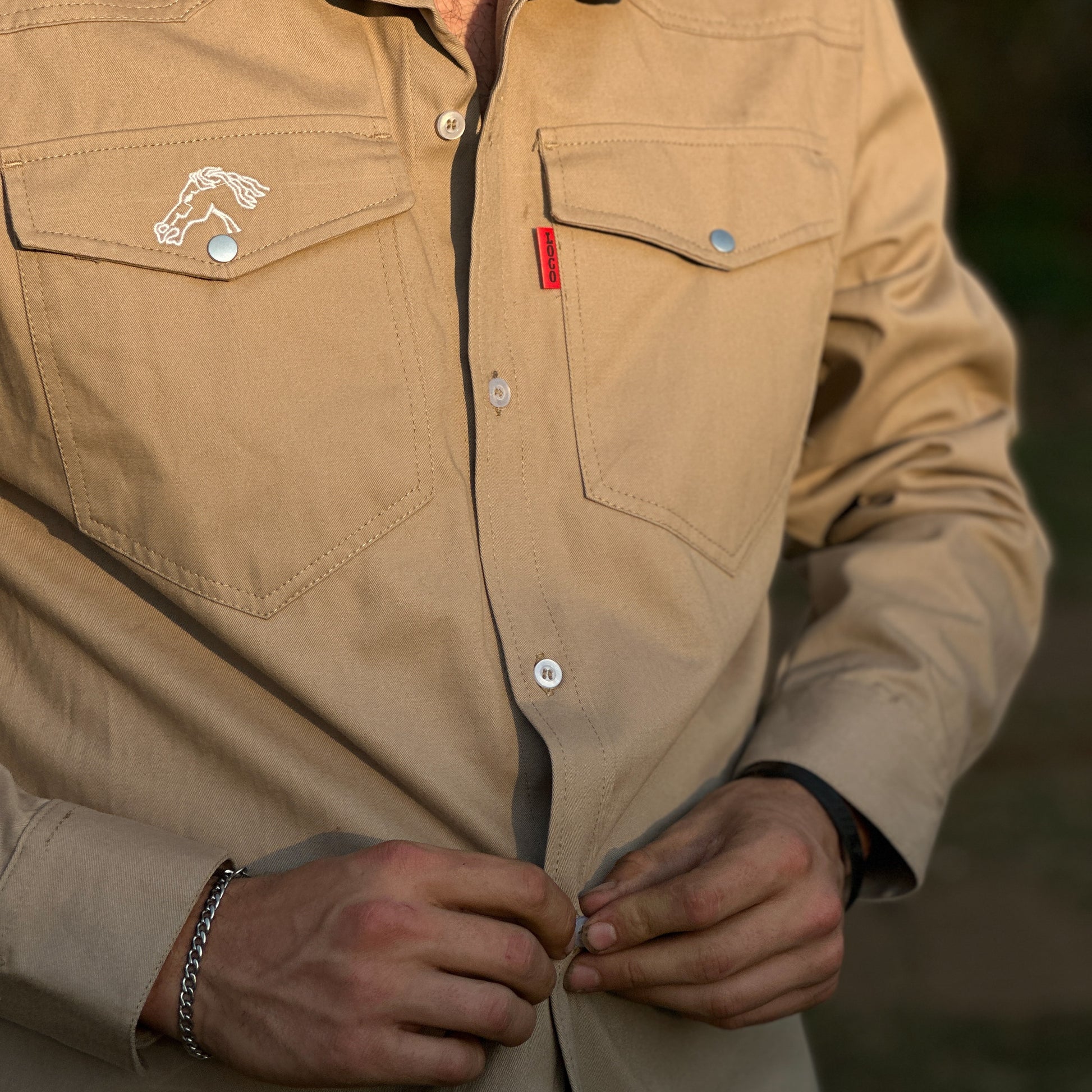 Embrace rugged style with our Men’s Western-Style Shirt, crafted from durable, soft cotton for all-day comfort. Featuring classic western details—like reinforced yoke panels, industrial buttons, and subtle stitching accents—this shirt brings authentic cowboy-inspired relentlessness to your everyday life. Its tailored yet relaxed fit makes it perfect for the trail, the town, or anywhere in between. Pair it with jeans and boots for a look that’s confidently rugged and effortlessly timeless.